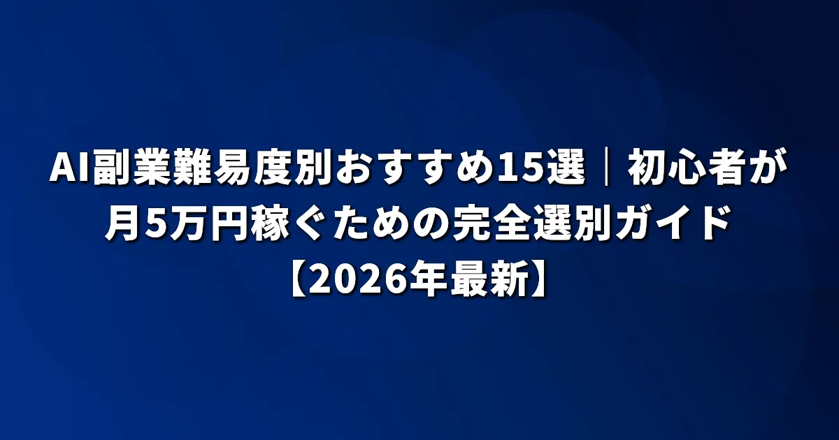 初心者向けAI副業15選:難易度・月収・必要時間を完全比較