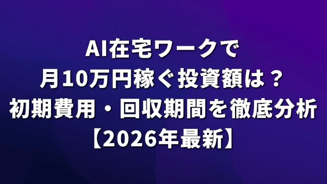 AI在宅ワークで月10万円稼ぐ投資額は?初期費用・回収期間を徹底分析【2026年最新】