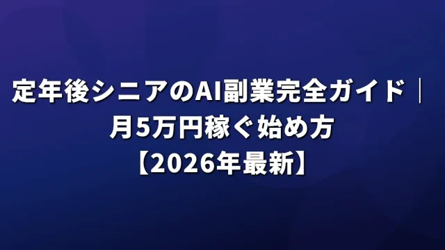 AI副業 定年後シニアのAI副業完全ガイド|月5万円稼ぐ始め方【2026年最新】 定年後のシニアがAI副業で月5万円稼ぐ具体的な始め方を解説。ChatGPTとクラウドワークスを活用し、週10時間で安定収入を実現する方法を初心者向けに紹介。 2026.04.02 AI副業収益化テクニック