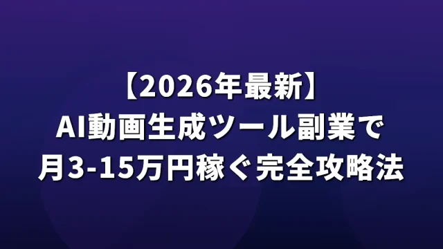 AIツール活用 【2026年最新】AI動画生成ツール副業で月3-15万円稼ぐ完全攻略法 AI動画生成ツールを使った副業で月3-15万円稼ぐための完全ガイド。おすすめツール比較、案件獲得方法、単価相場まで実践的に解説。初心者向けの具体的な始め方を紹介。 2026.03.29 AIツール活用AI副業